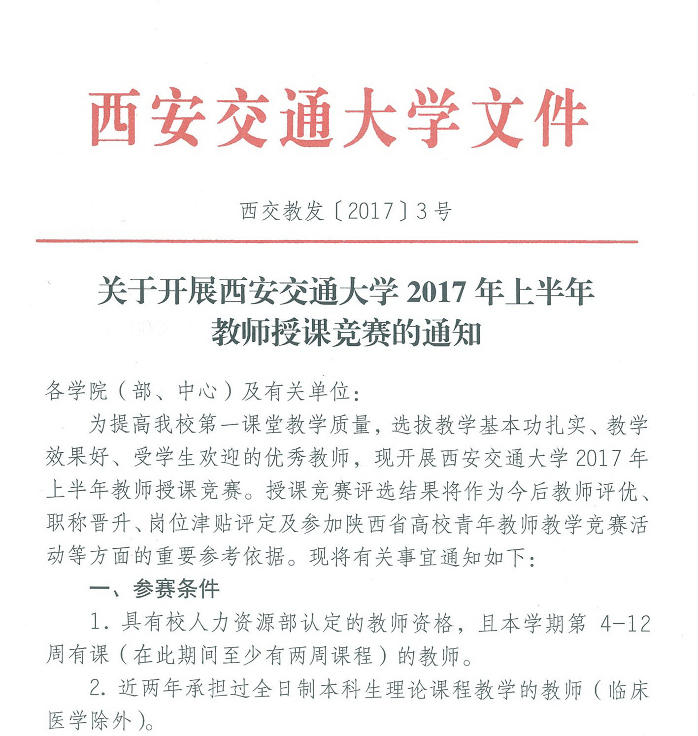 | 关于开展西安交通大学2017年上半年教师授课竞赛的通知【详细】 |